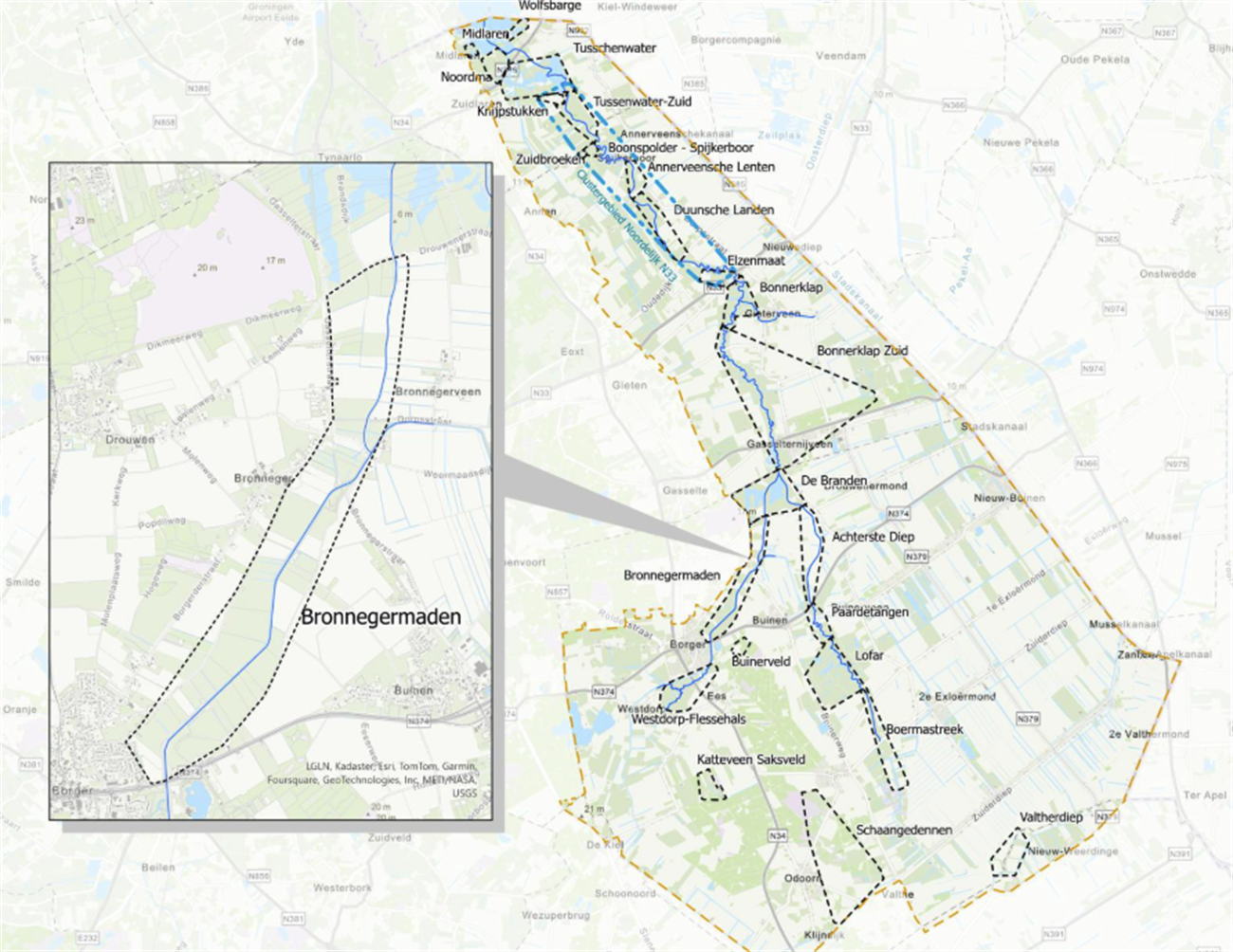 Bronnergemaden ligt in het hart van het Hunzedal, tussen Borger en Drouwenerveen. Hier werken we samen met betrokken gebiedspartijen aan een plan voor natuurontwikkeling, waterberging en landbouwstructuurverbetering. We houden hierbij rekening met de omgeving. Het inrichtingsplan voor dit gebied is uitgewerkt tot een definitief ontwerp. Met de storymap kunt u alvast zien hoe het landschap straks wordt ingericht.