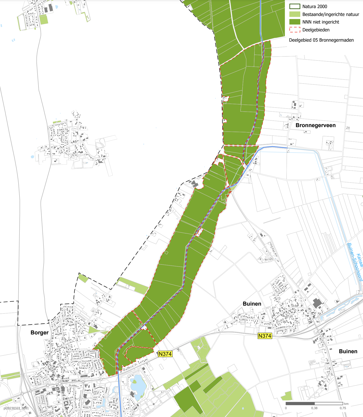 Bronnegermaden is gelegen aan het Voorste Diep tussen Borger en Drouwenerveen. Het is vooral een agrarisch gebied. Dit projectgebied bestaat uit drie gebieden: Achtermade, Bronneger en Bronnegermaden. Deze gebieden hebben ieder eigen uitdagingen, maar voor deze gebieden is één integraal inrichtingsplan gemaakt. We behandelen de gebieden dus als één projectgebied. De nieuwe inrichting biedt de natuur meer ruimte, waardoor er ook nieuwe natuur zal ontwikkelen in het gebied.